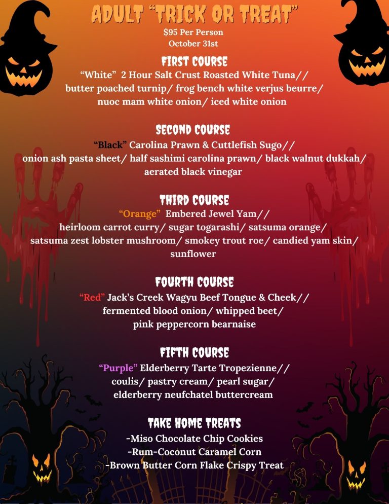 Something spooky (and delicious) is brewing… Join us for our Adult “Trick or Treat” Tasting Menu. A night of ghoulishly good food, eerie ambiance, and killer cocktails. Reserve now before it’s gone!