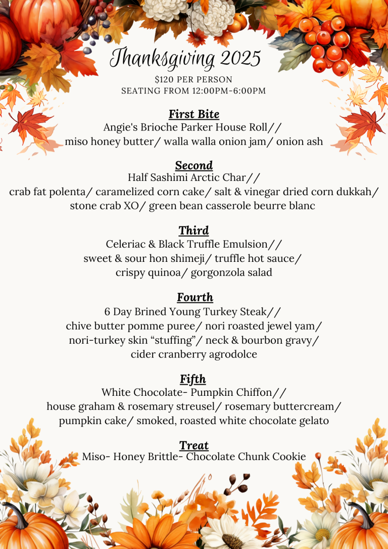 This Thanksgiving, gather your loved ones around our table at Franck’s for an unforgettable 6-course feast. Savor the flavors of the season, perfectly prepared by our chefs, and let us take care of everything — from the cooking to the cleanup. All you need to do is sit back, relax, and make beautiful memories together.