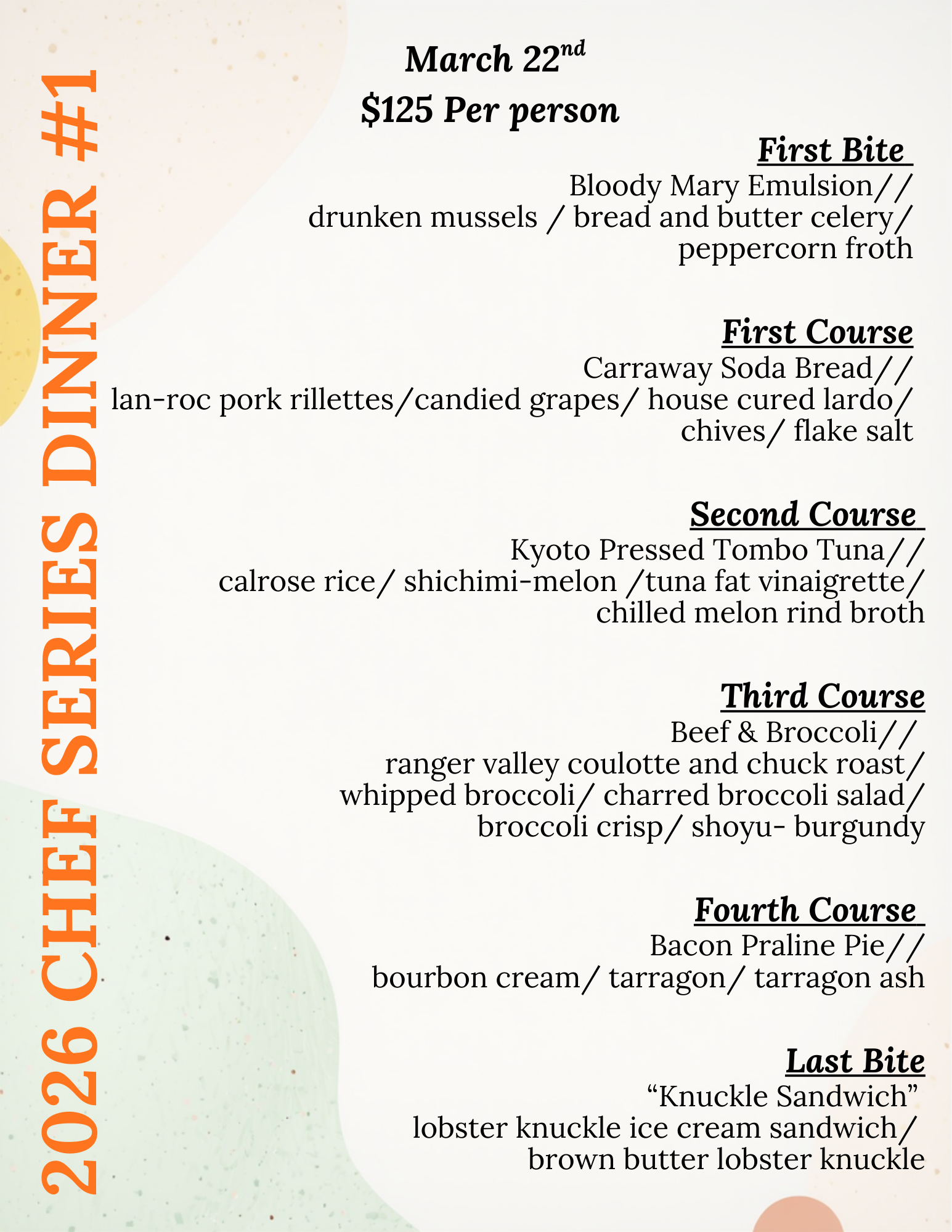 Tuesday Tasting Menu